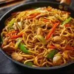 Chicken Lo Mein is a classic Chinese dish that consists of stir-fried egg noodles, tender chicken, and a variety of colorful vegetables. It’s often tossed in a flavorful sauce made from soy sauce, sesame oil, and a hint of garlic. The beauty of this dish lies in its versatility—you can add whatever veggies you have on hand or even substitute the chicken for tofu or shrimp. It’s warm, comforting, and simply irresistible!