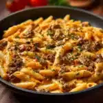 - Serve: Plate it up and sprinkle the remaining cheese on top. Enjoy your creamy beef pasta while it’s warm!