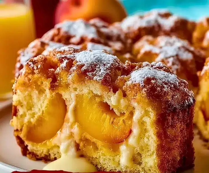 This lovely cake is basically summer captured in a slice. It’s a moist and fluffy cake, bursting with chunks of fresh peaches, and it has a subtle sweetness that pairs perfectly with a light dusting of powdered sugar on top. Trust me, this cake is not just a dessert; it’s an experience, reminiscent of long summer afternoons spent with family and friends, laughing and enjoying life together. Whether you’re celebrating a birthday or just want to enjoy something sweet, this peach delight is sure to win hearts!