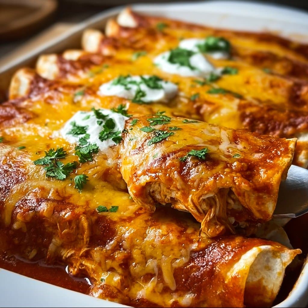 You can serve these ultimate quick and easy chicken enchiladas with a side of rice or a simple green salad for a complete meal. Don’t forget a dollop of sour cream or some guacamole on top. Oh, and if you’re feeling adventurous, a splash of hot sauce can really kick things up a notch!